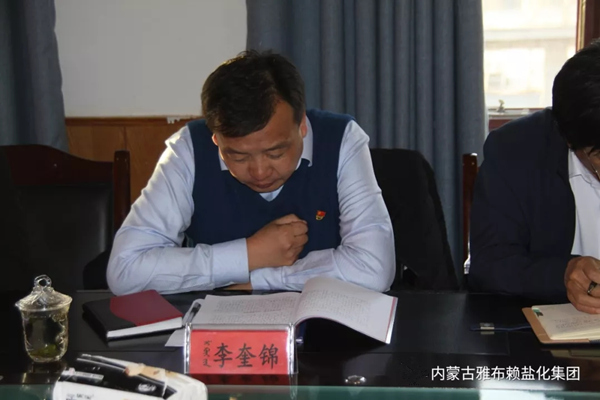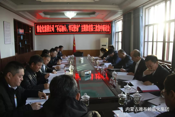 1122,雅盐化集团公司党委召开“不忘初心、牢记使命”主题教育第三次集中研讨会,旗委“不忘初心,牢记使命”主题教育第三指导组组长王守祯到会指导,集团公司党委书记、董事长孙刚德主持会议并讲话,集团公司中高层管理人员共16人参加研讨。