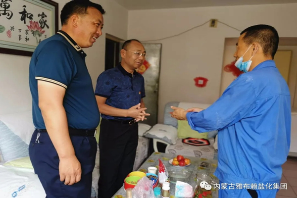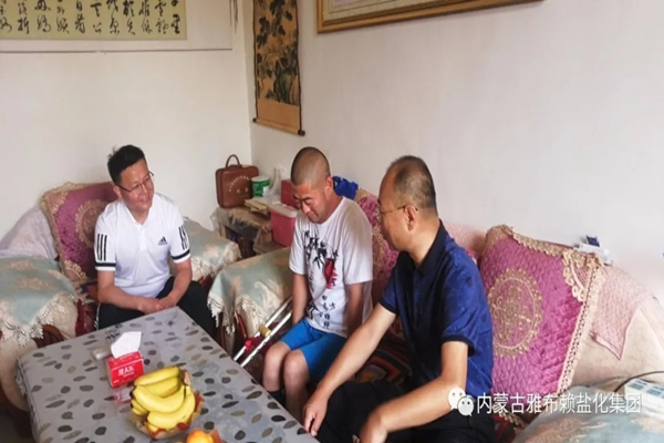 下午,公司党委书记、董事长孙刚德陪同阿右旗委组织部部长王东看望慰问公司困难党员且正在进行工伤治疗的周治军,详细了解和询问了他的身体恢复情况,叮嘱他积极配合治疗,争取早日恢复健康,重返工作岗位。