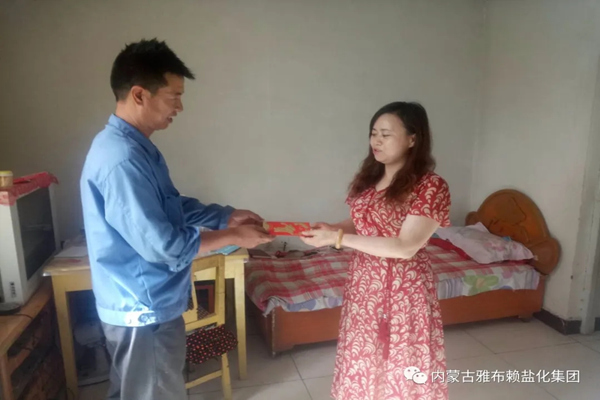 71日上午,在建党99周年之际,为了切实让广大党员感受到党组织的温暖,增强党员对党组织的归属感,进一步夯实党的组织基础,集团公司党委书记、董事长孙刚德、党委副书记、总经理李奎锦、工会主席张菊萍亲切看望慰问公司困难党员、老党员,为他们送去慰问金、慰问品,并致以节日的问候。在走访慰问过程中,每到一户老党员家中,都会详细了解他们的身体状况和生活情况,与他们亲切交谈,对老党员们为公司发展做出的贡献表示感谢,叮嘱他们一定要保重身体,并勉励他们继续发挥余热,为雅盐的发展献计献策。对生活困难党员,鼓励他们乐观进取、奋发向上、勤奋工作,通过自身努力,不断改善生活现状。