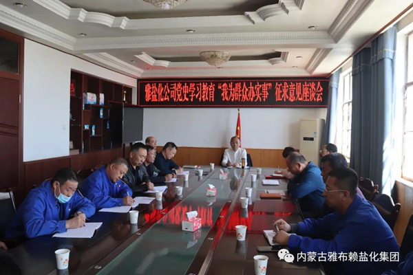 雅盐化集团公司自党史学习教育启动以来,始终坚持学做结合、以学促用,把“我为职工群众办实事”实践活动作为党史学习教育的着力点和落脚点,真心实意为职工群众办实事、办好事、解难事。通过开门纳谏、走访调研、座谈交流、网上征求意见等多种方式,问计于民、问需于民、问政于民,深入了解职工群众急难愁盼问题。